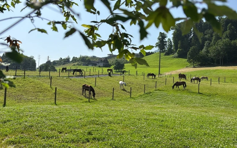 Die idyllische Lage des Eulenhofs macht jeden Tag besonders. Umgeben von Wiesen, Wäldern und Bergen liegt unser Hof direkt am weitläufigen Reitwegenetz von Wilen. Wir pflegen unsere Weiden nachhaltig und achten auf Ressourcen – für eine Pferdehaltung, die im Einklang mit der Natur funktioniert.